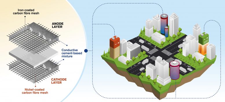 Primer concepto mundial de baterías recargables a base de cemento: imagine un edificio de 20 pisos q