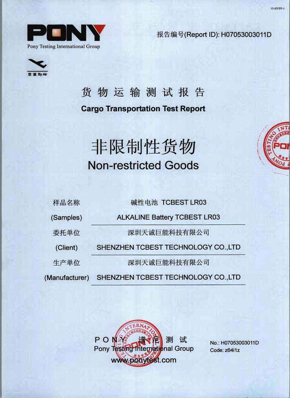 Cargo Transportation Test Report By Air