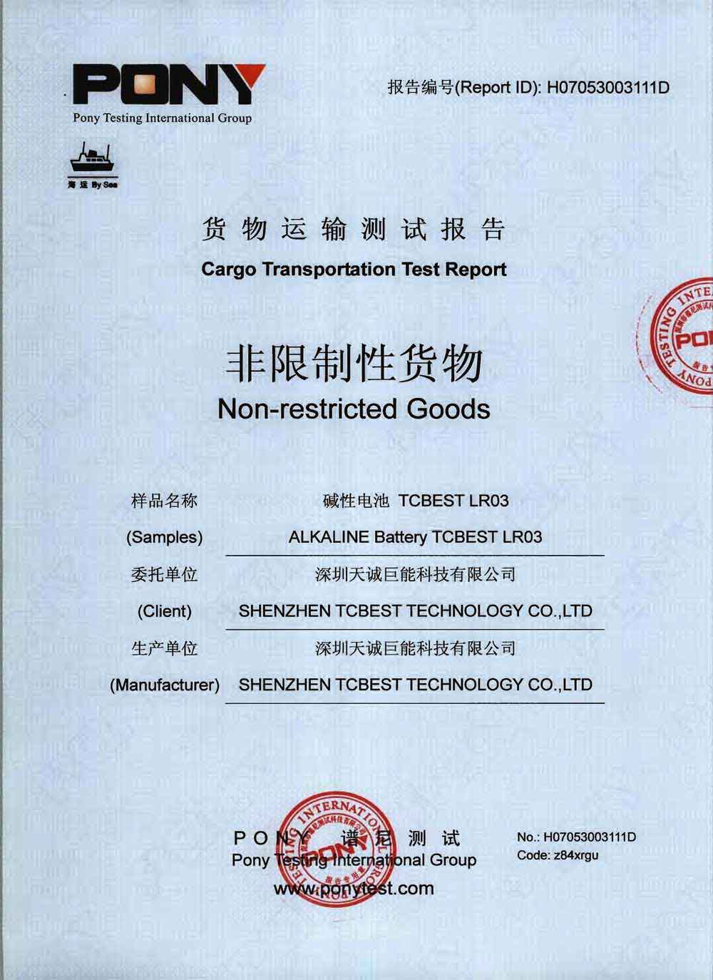 Cargo Transportation Test Report By Sea