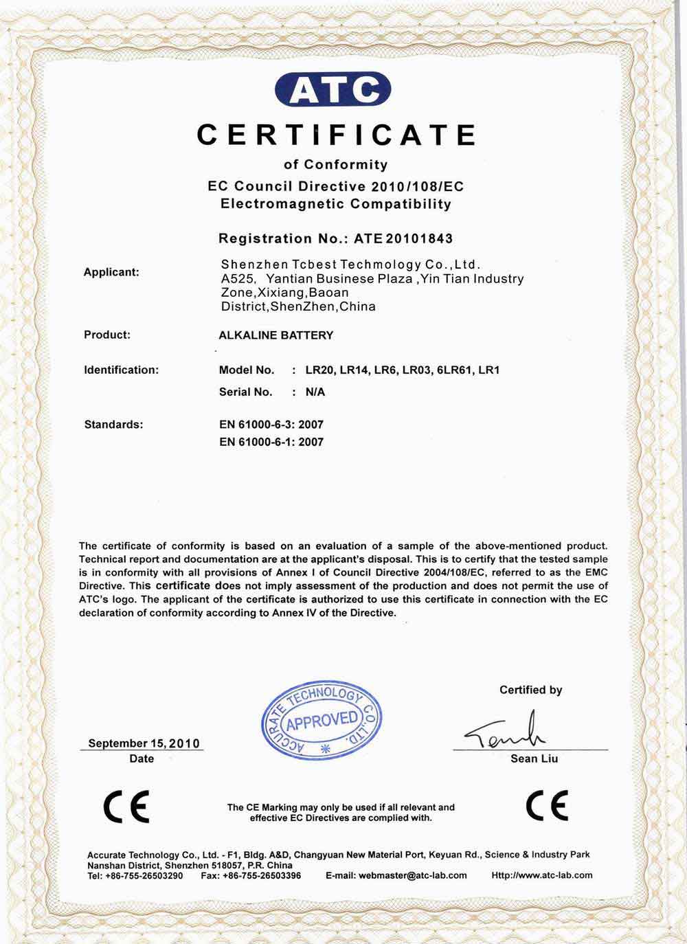 ATC CE Certificate of Conformity